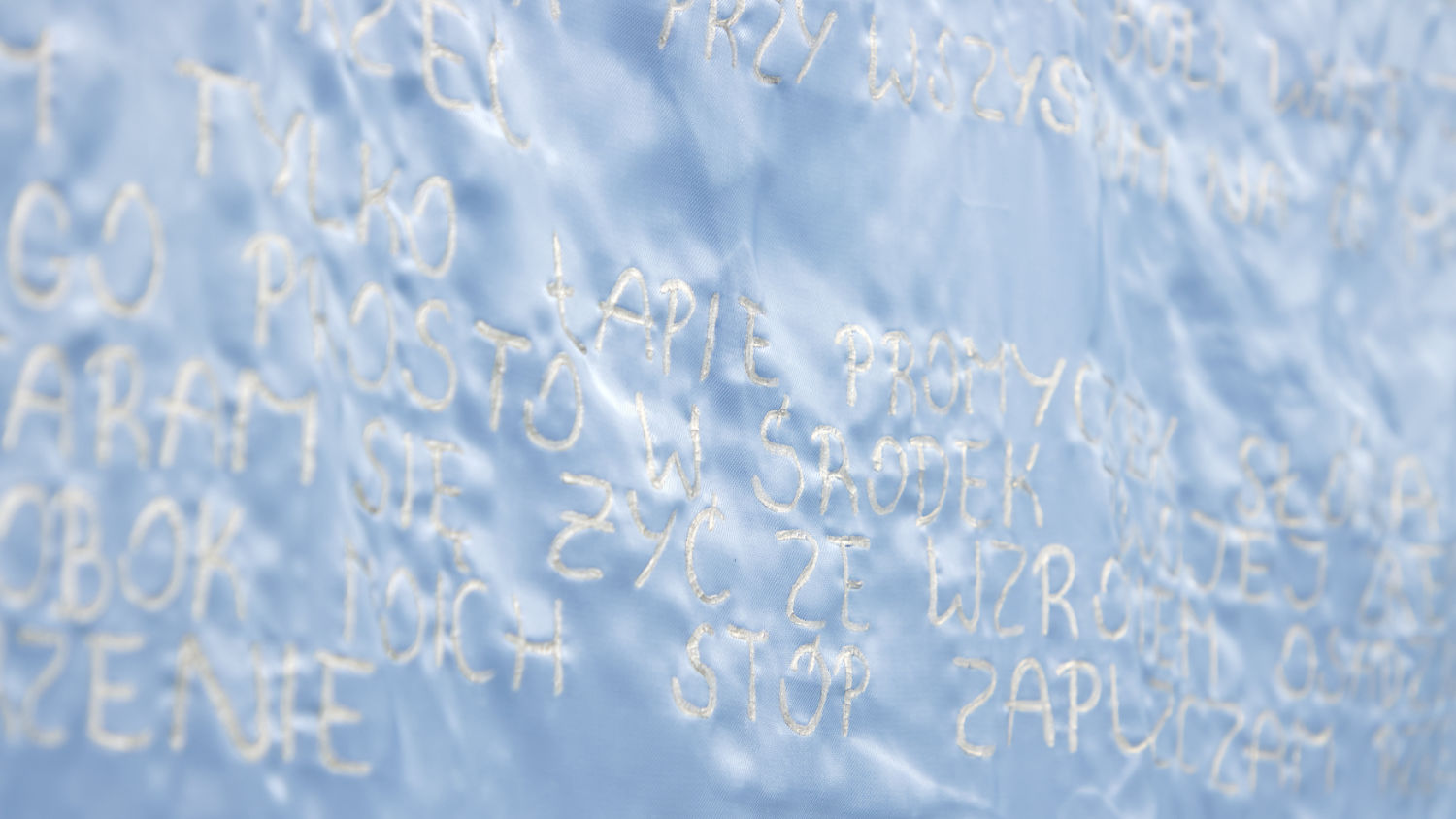 “I cannot reach the objects I touch” is an exhibition about closeness which is not always possible. About relationships and experiences in which presence and contact do not guarantee full participation. It is also a story about the body, which remembers more than we can name, and which often remains caught between apparent normality and a sense of lack, incompleteness, and the difficulty of being fully seen and understood. Perhaps you know the feeling? Being close, yet somewhat distant. What does your body do then? Does it try to get closer, or rather to withdraw? The title, taken from Bessel van der Kolk’s book The Body Keeps the Score, becomes a point of reference for the work of Kornel Leśniak – an artist working with oil painting, embroidery and the written word.