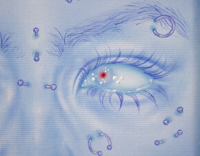 Kornel Leśniak (born in 1999) graduated from the Academy of Fine Arts in Katowice. Using oil paintings, the written word and large-format fabrics, he explores the issue of empathy strategies and emotional phenomena occurring at the points of contact between various aspects of collective generational experience. His works touch upon themes of gender, queer anxiety, physicality, the need to belong, romantic anxiety and uncertainty, nostalgia, and identity.