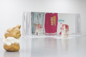 Karolina Konopka creates a bitter-sweet world balancing between pleasure and anxiety, revealing the hidden social mechanisms that shape our approach to the body, food and consumption. Her work is not only pleasing to the eyes, but also makes us reflect on how the rituals of food, abundance and celebration affect our psyche. Although at first glance her work – encompassing painting, sculpture, video and text – is colourful, glittering and appetising, beneath the sugary surface lies a critique of contemporary social rituals such as celebrations and communal and solitary meals. The cakes that become the focal point of her works are not just aesthetic objects, but symbolise abundance, ritual, compulsion and social expectations. The confectionery giants she creates are a combination of reflections on mass culture, traditions and contemporary expectations that accompany throughout our lives. Konopka explores how the everyday acts of eating, although seemingly trivial, are full of hidden meanings and emotions.