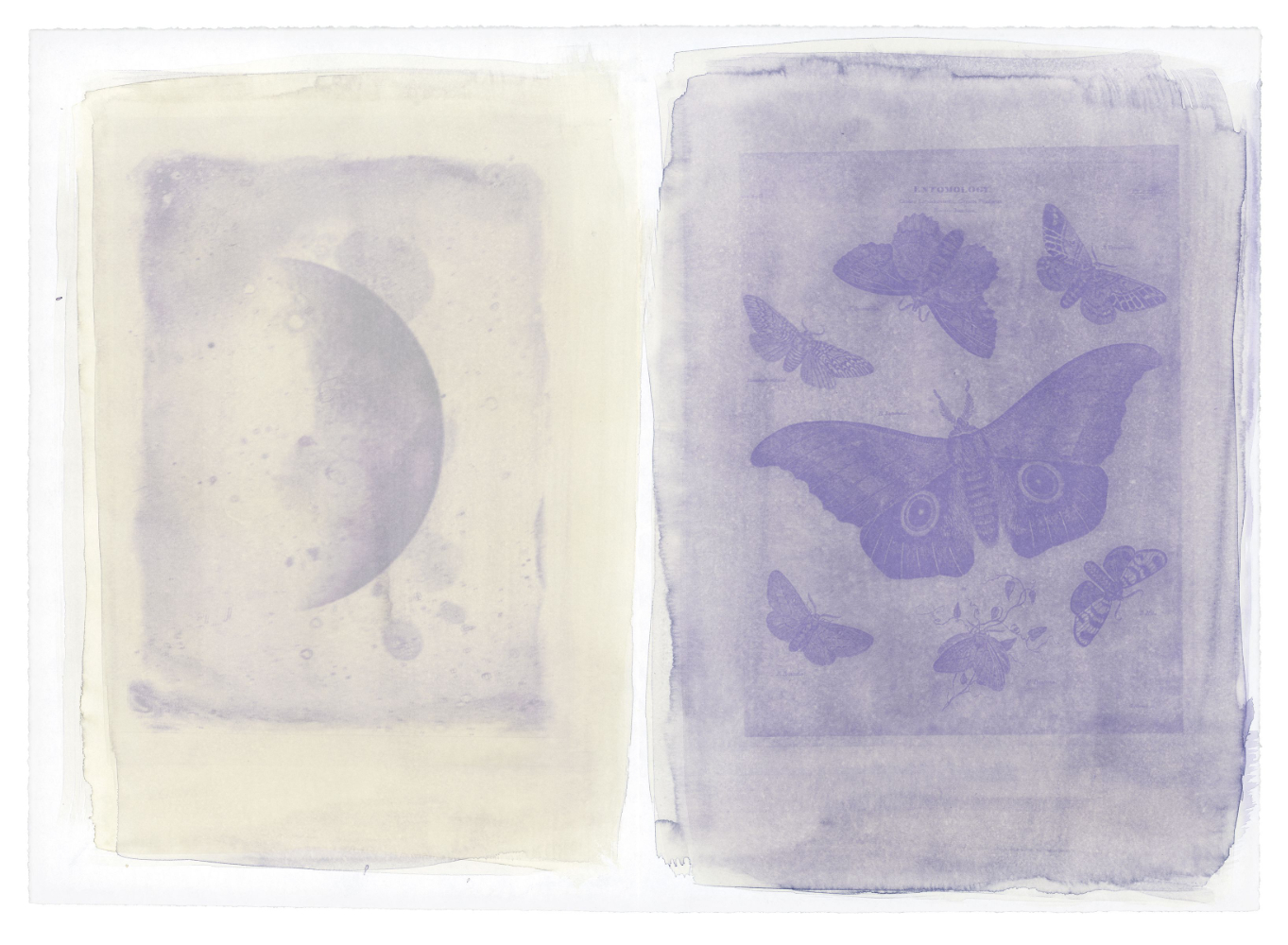 A prerequisite for photographic images, both contemporary and ancient, is light. Paradoxically, in the anthotypical works of Jesseca Ferguson, who uses mainly sunlight to realise them, there are motifs that refer to the time of night: Moon, Owl, Moths. Their dark colours seem to emphasise the power of the motifs present in the photograph.