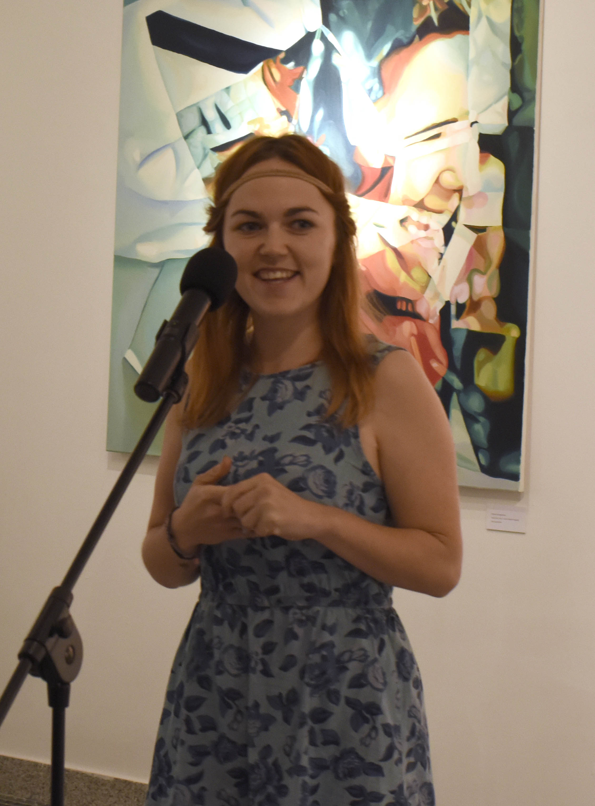 The „I Meet Another One in His Face” exhibition presents the works of two of the last year’s graduates of the Faculty of Fine Arts of the Nicolaus Copernicus University in Torun Katarzyna Dumka (drawing) and Marta Szczepańska (painting). The title of the exhibition’s title refers to the idea developed by the philosophy of dialogue, focusing on relationships between people: Me-You. Meeting another person, talking with them, we stand in front of each other to see our faces. The face is the face is the starting point to make contact with another person. Katarzyna Dumka and Marta Szczepańska in spite of the formal differences and different means of expression focus their interests around the image of the face. Eye-catching, colourful presentations of young women portrayed by Marta Szczepańska seem to be situated on the opposite pole in relation to anxiety-provoking, monochrome images of homeless people. But when the colourful world of the elegant characters of the paintings by Marta Szczepańska is „broken” by her, and thus their faces lose the masks, in some way they correspond with the portraits of the homeless placed on black backgrounds by Katarzyna Dumka seemingly repulsive, but not enveloped by any curtain. Both become „an open book” i n which one can find both traces of harm and confusion, as well as the beauty and the truth about man. The exhibition is designed to encourage reflection on the nature of meeting face to face with another human being.