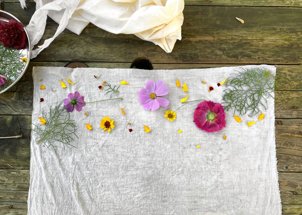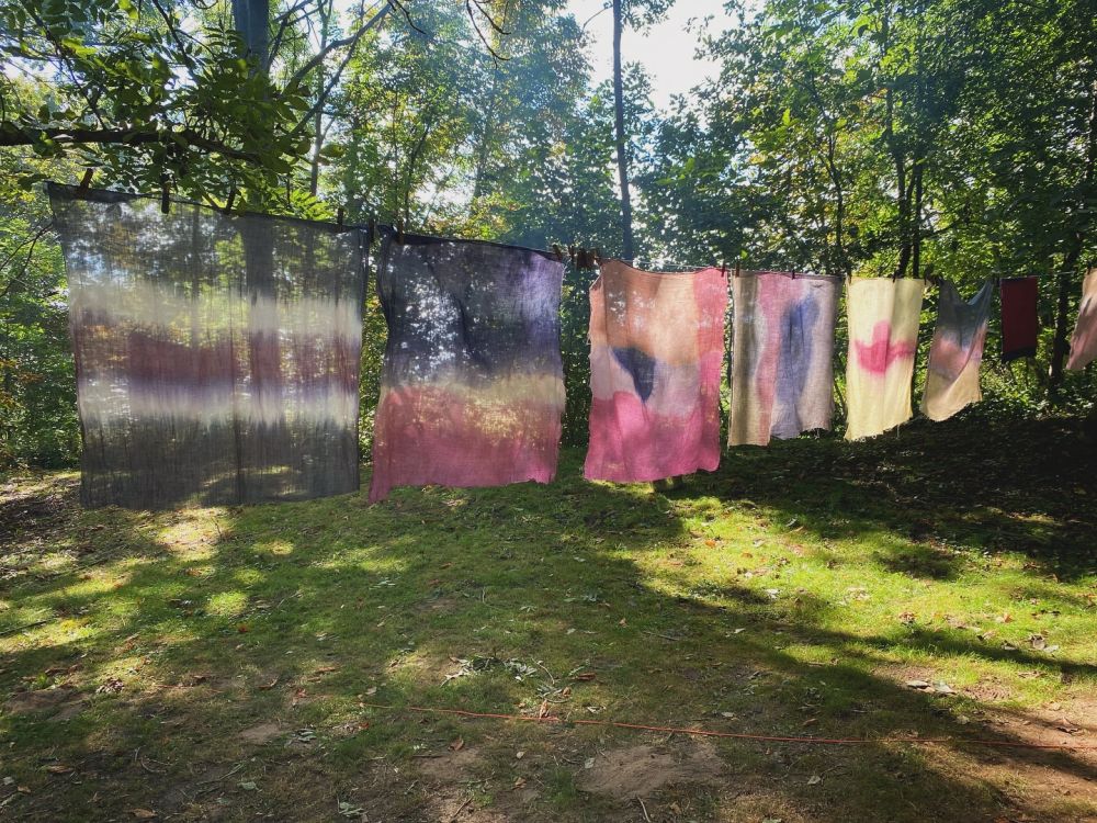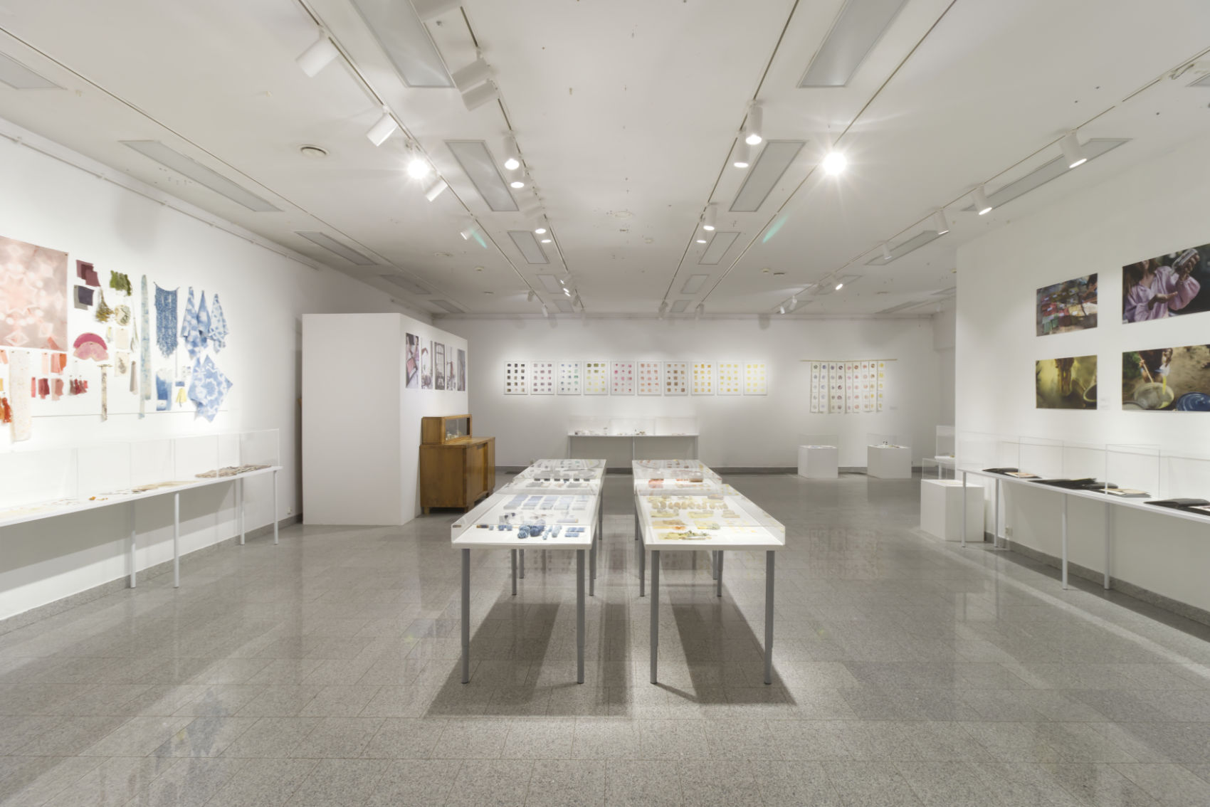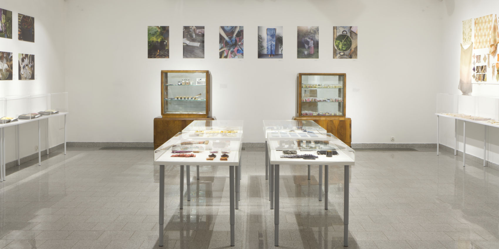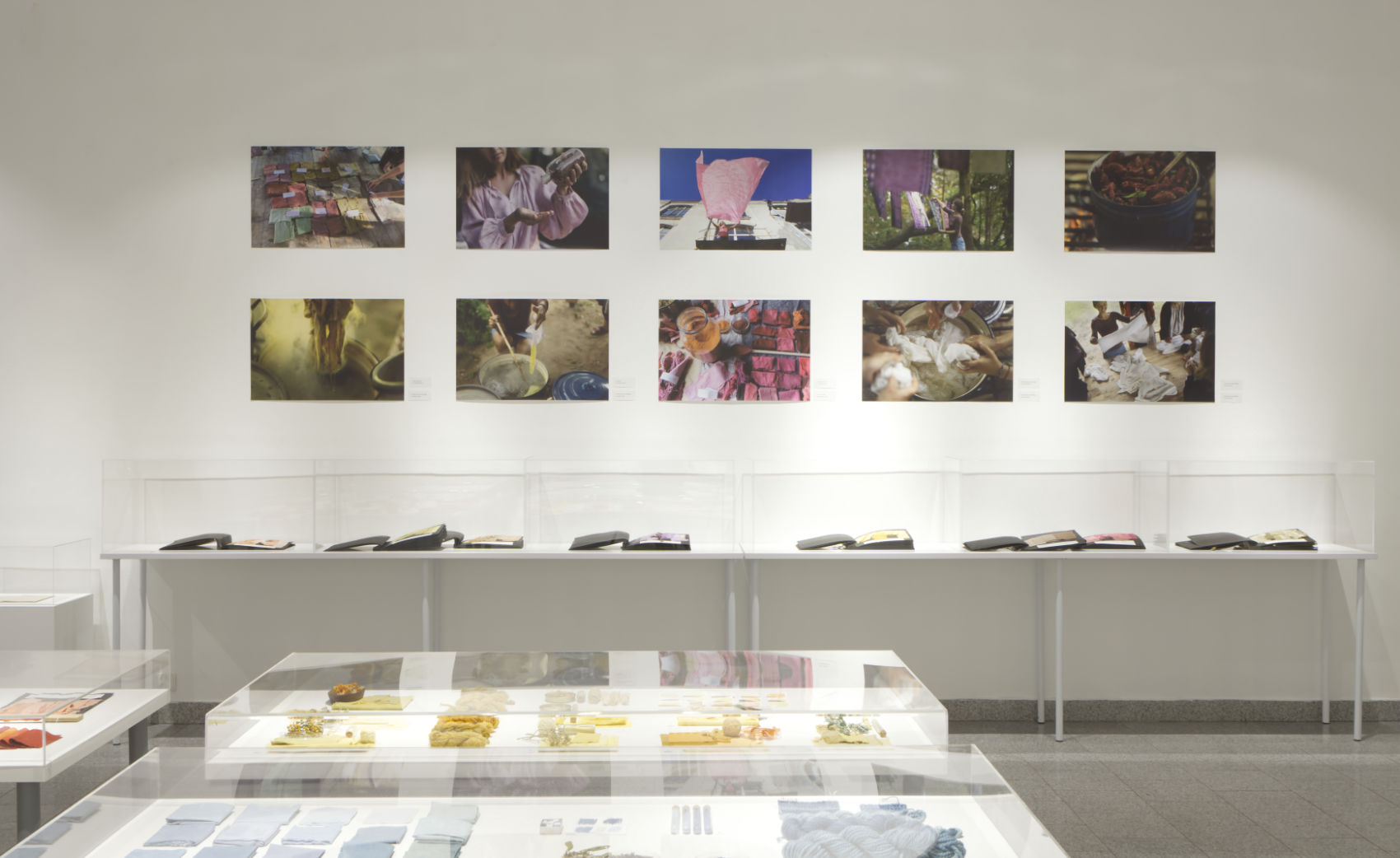 At the exhibition, we explain how you can discover and create colour yourself. It is a slow process by nature, requiring great concentration, and rich in sensory experiences. It begins with a trip to the meadow, the forest, and the gathering of plants. The next stage involves craftsmanship – tending to cauldrons filled with fragrant dye extracts, dyeing fibres in baths, or obtaining essential pigments and producing paints. Finally, the colours created are used in the further creation of works and compositions.