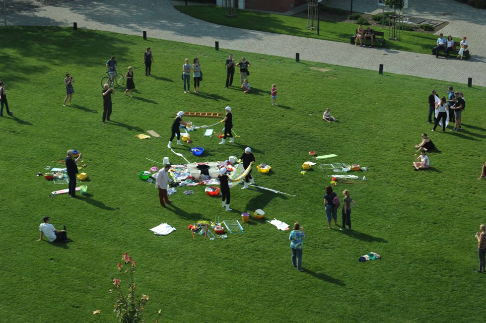 Once again, we ask the question about the role of artistic activities. To what extent is this still the ability to create, and to what extent a role that has to be played by art? What issues does it communicate today? Does the language attempting to describe its meaning bring new senses or is it limiting? And what, finally, comes from an artistic intervention into a public space, in what way does it change the people involved and does it change them at all?. What may the saying „washing dirty linen” mean, which refers to the concepts common in the Western culture, at the same time inducing the effect of negation, hostility or even disgust towards phenomena so designated. We’re attempting to „remove stains” from the city; will it helping emotional cleansing?
