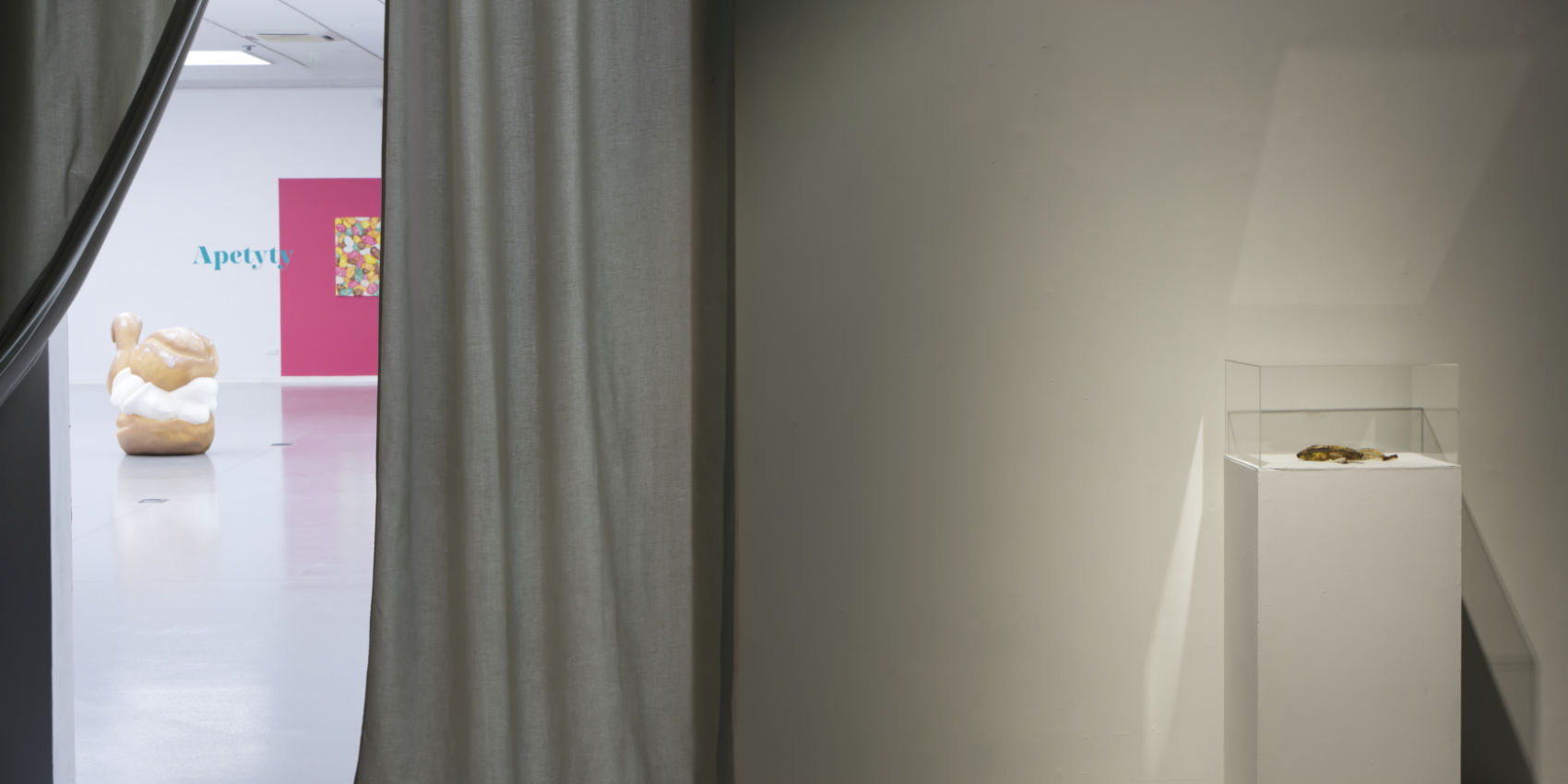 To wystawa o przyjemności i przesycie. O gestach, które powtarzamy codziennie – jedzeniu, kupowaniu, patrzeniu – i o tym, jak wiele znaczeń można w nich ukryć. Z jednej strony jest tu miejsce na śmiech, krytykę i zabawę formą, z drugiej – na refleksję o granicach przyjemności i pragnienia. W Apetytach nic nie jest takie, jak się wydaje. Znane gesty, jak jedzenie, kupowanie, patrzenie, stają się momentami niepokojącymi, ironicznie zniekształconymi, prowokując do zmiany perspektywy. Prace Konopki, Kozłowskiej i Natalii LL, choć tak różne, łączy wspólne poszukiwanie granic między przyjemnością a przymusem, wolnością a opresją, zmysłowością a codziennością.